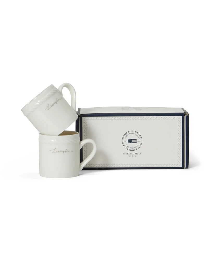 Lexington-espressokoppen er fremstillet af fint porcelæn og kombinerer tidløs elegance med varig holdbarhed. Det har en delikat struktur med rebdetaljer, håndmalede kantstriber og en blank glasurfinish. Dette krus er meget modstandsdygtigt over for pletter, varme og ridser.