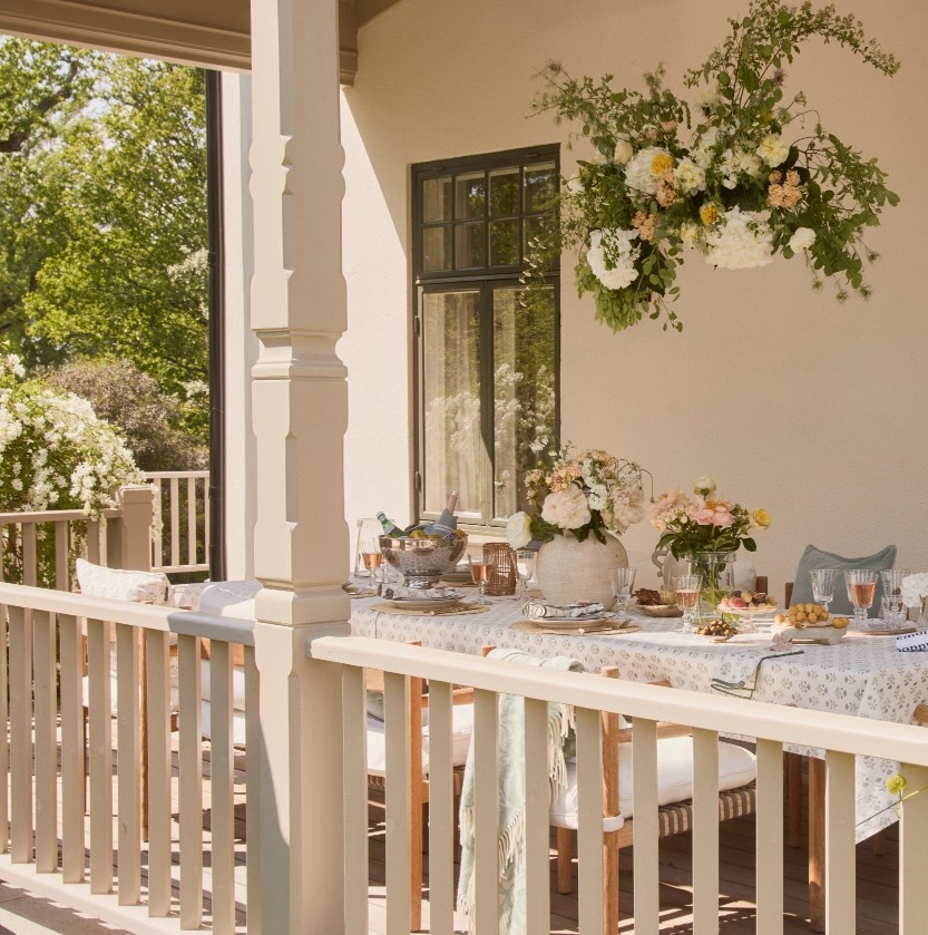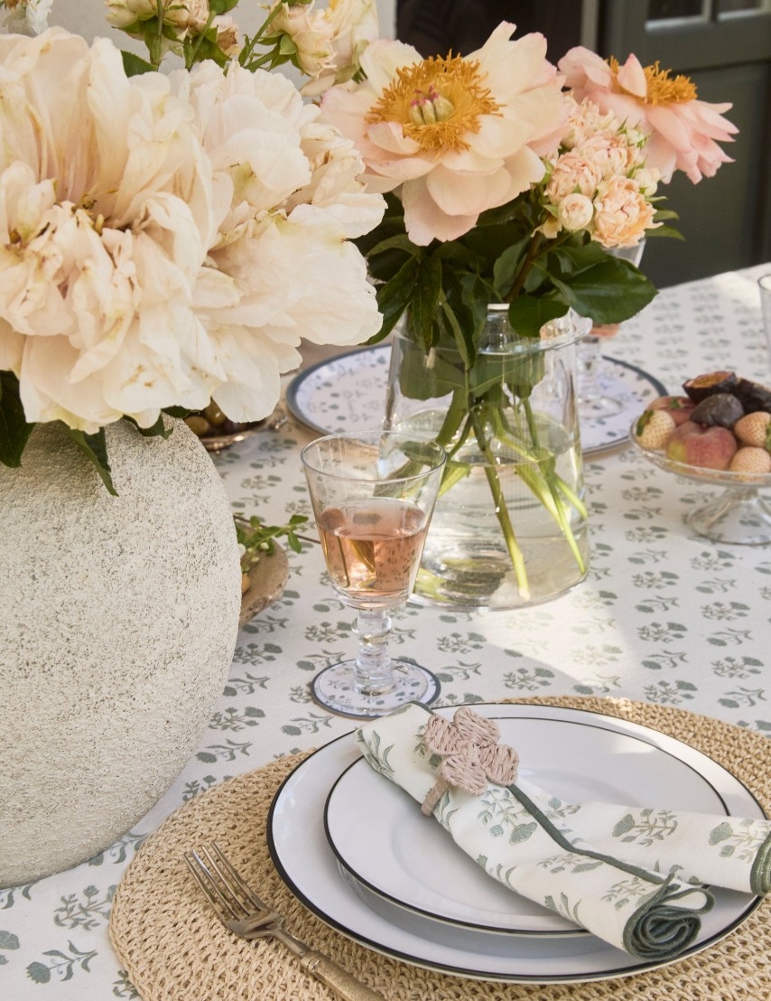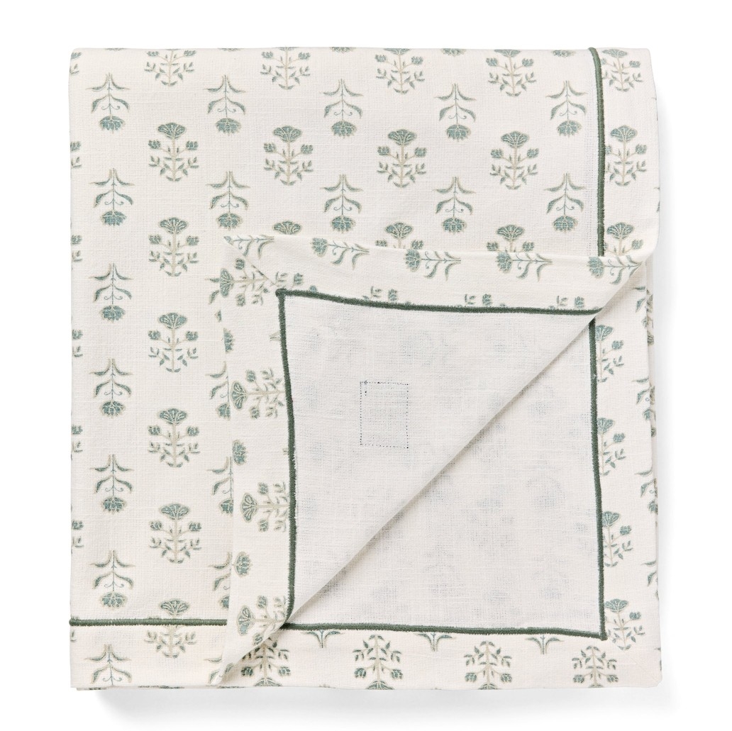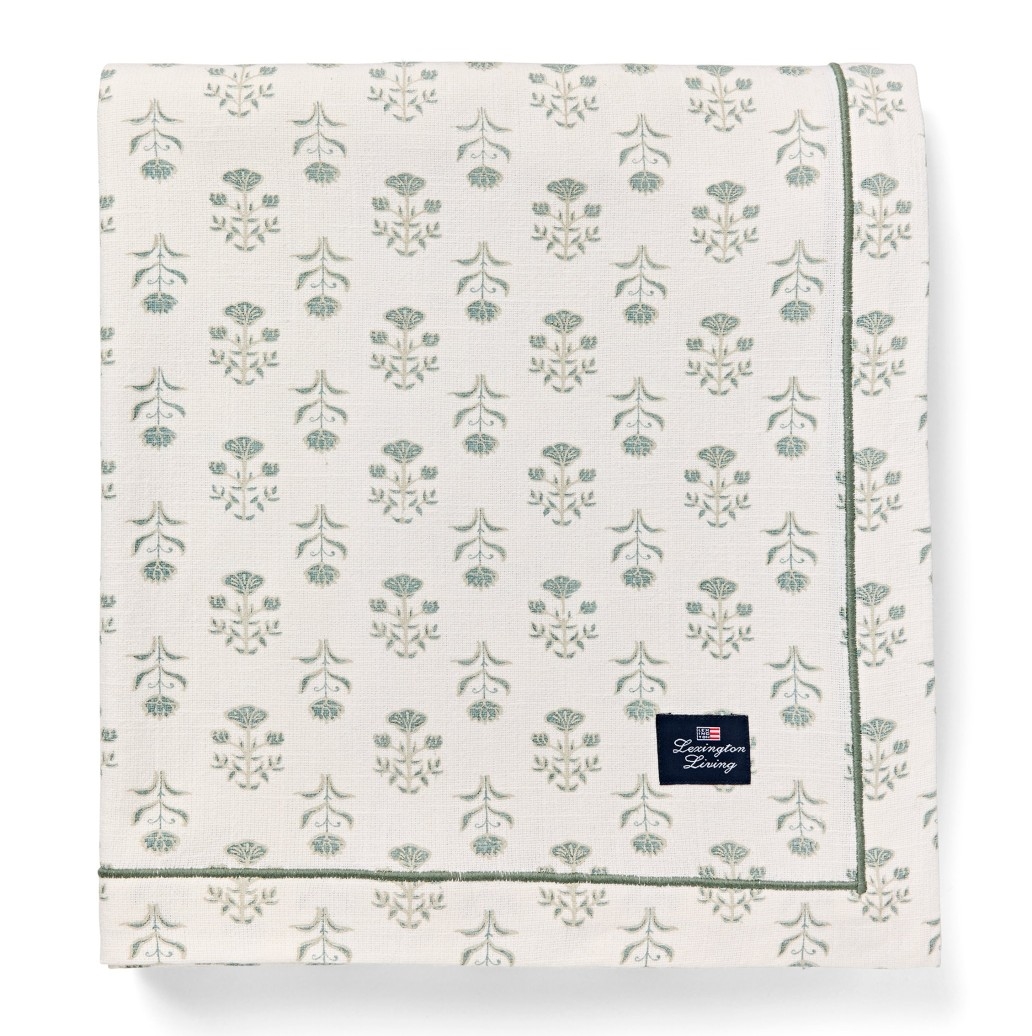 Fantastisk ny og lækker Forårsdug fra Lexington i økologisk bomuld med et "forårsblomstprint" i hvidt og eukalyptus.