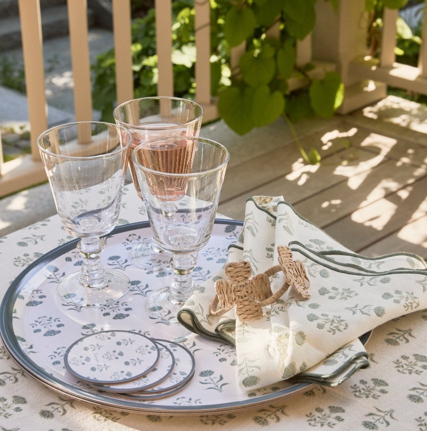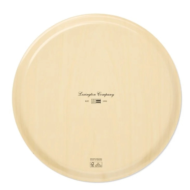 Så fin rund bakke med eksklusivt Lexington-print med forårsblomster. Indbydende, dekorativ og perfekt til den skønne "terrassetid". Bakken er fremstillet i Sverige i lamineret birkefiner, som er et utrolig stærkt, miljøvenligt og holdbart materiale. Matchende glasbrikker er tilgængelige i samme materiale.
