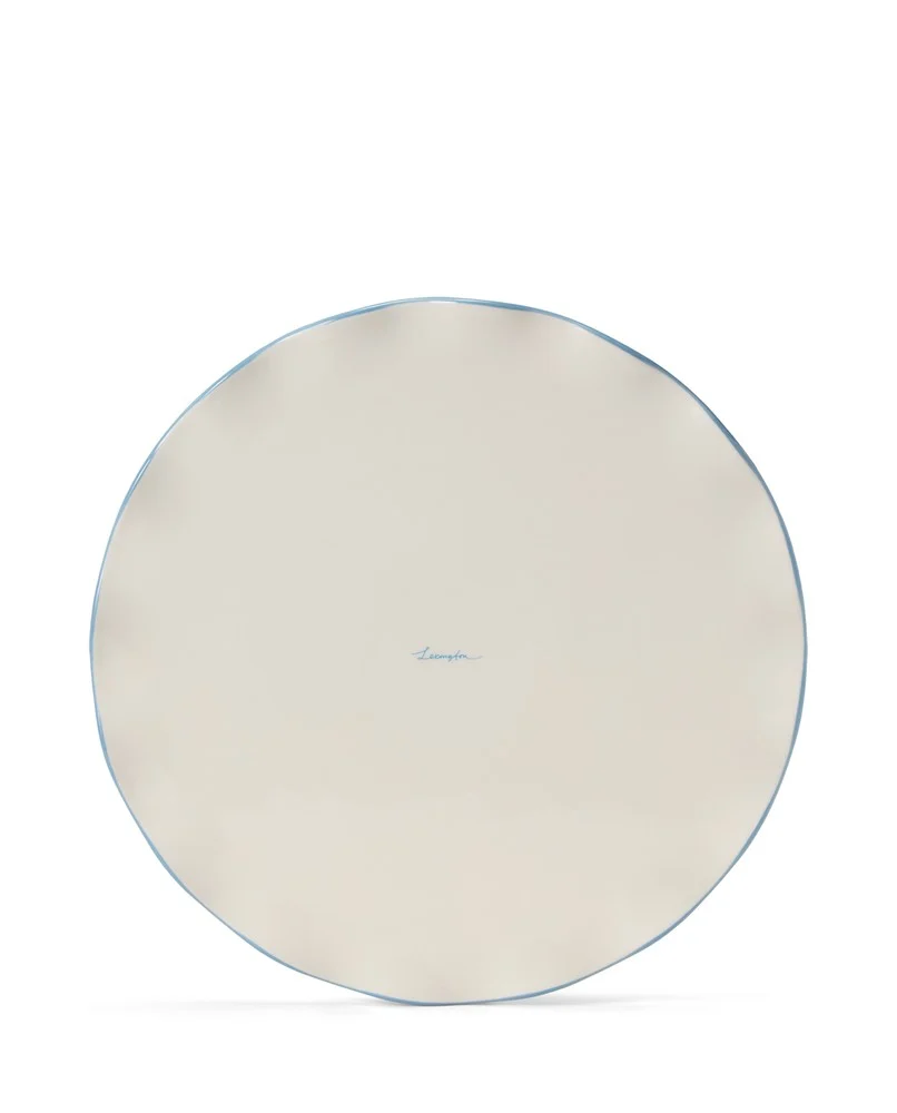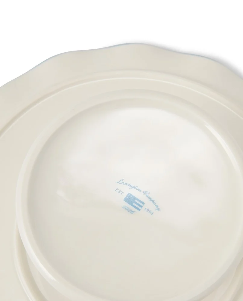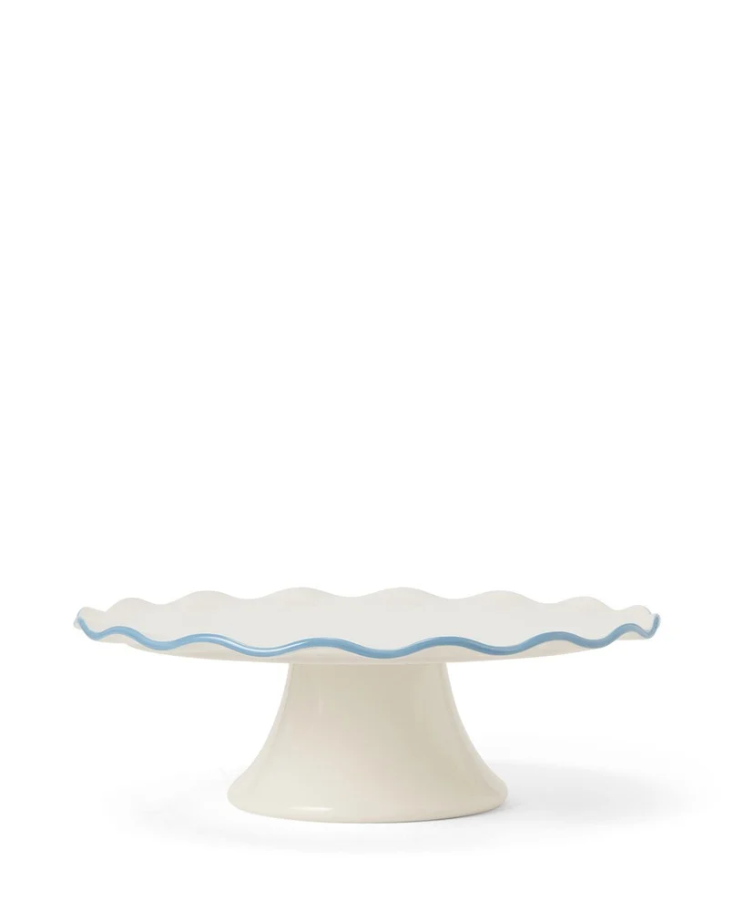 Lexington Wavy Cake Stand in Stoneware, White/Blue