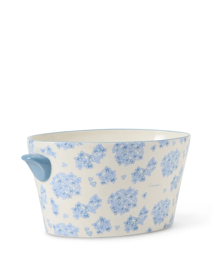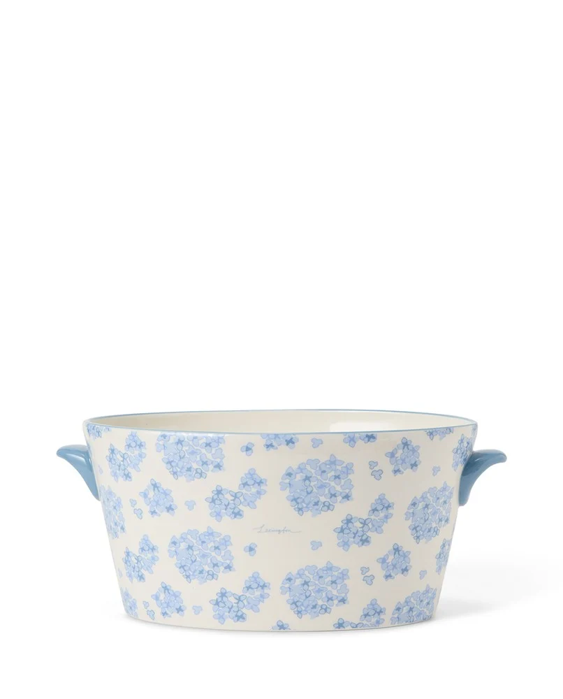 Lexington Floral Pot with Handles in Stoneware, White/blue