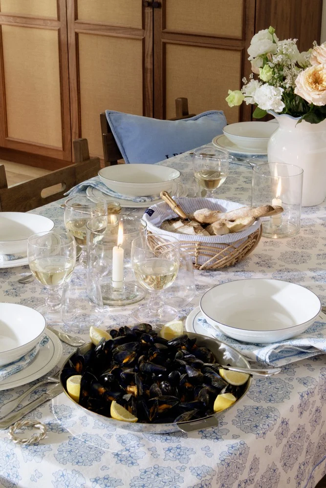 Lexington Wavy Rattan Basket with Liner, Blue/white