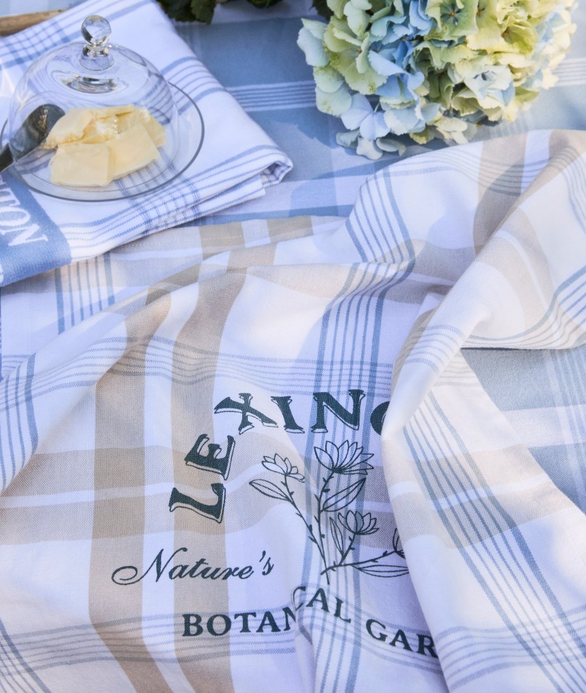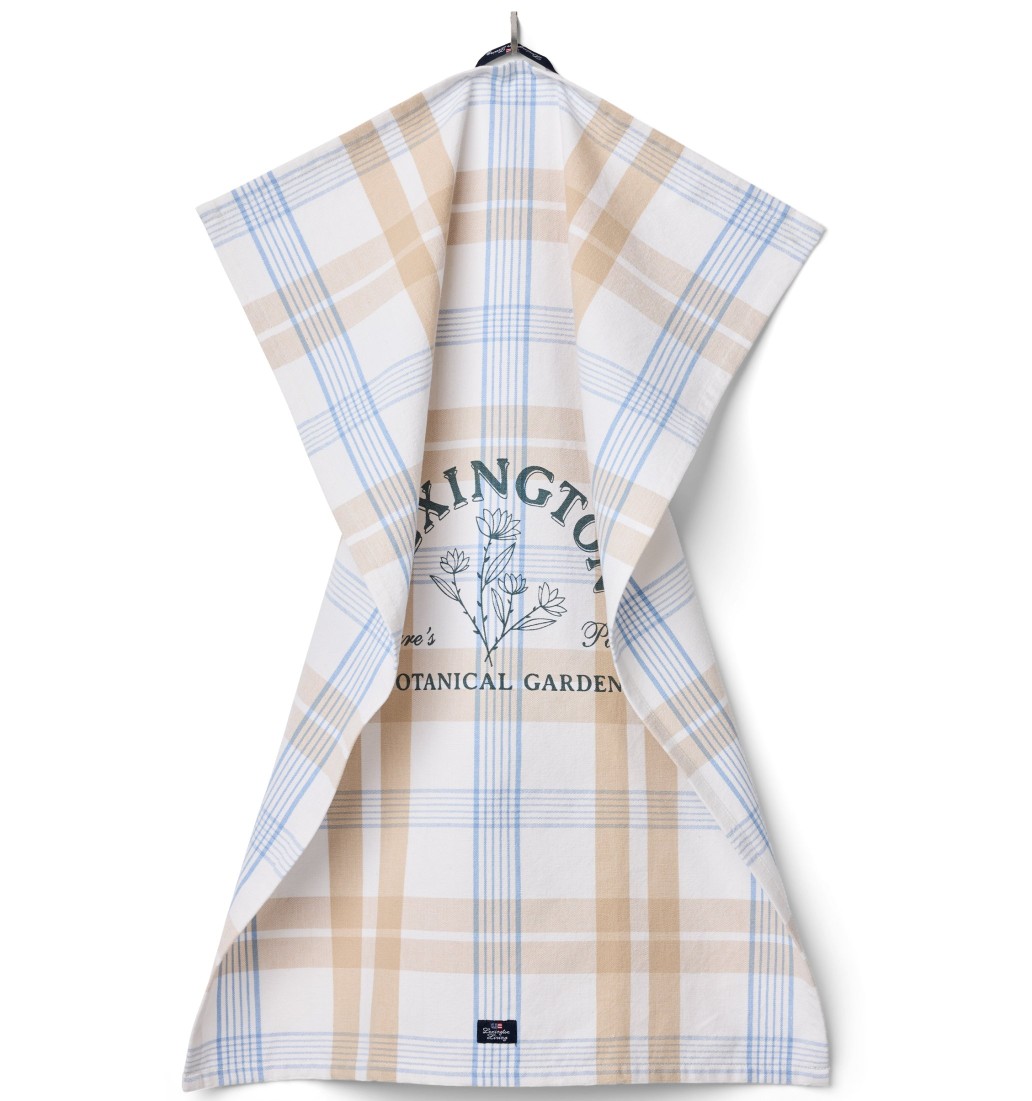 Lexington Botanical Checked Organic Cotton Kitchen Towel, hvid/beige/blå